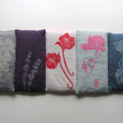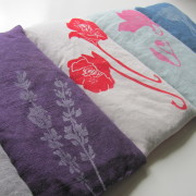 Fastsoft Press Lavender Eyepillows are hand-printed from carved linoleum blocks and feature a variety of original botanical designs .Made from linen and linen/cotton combinations, each eyepillow is hand-filled with a blend of flaxseed and and lavender. They can be heated or refrigerated to provide relief from tension/migraine headaches, insomnia, stress, as well as soothing tired eyes.