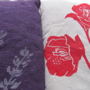 • (2) “Linden Rose” eyepillow, red print on natural muslin
