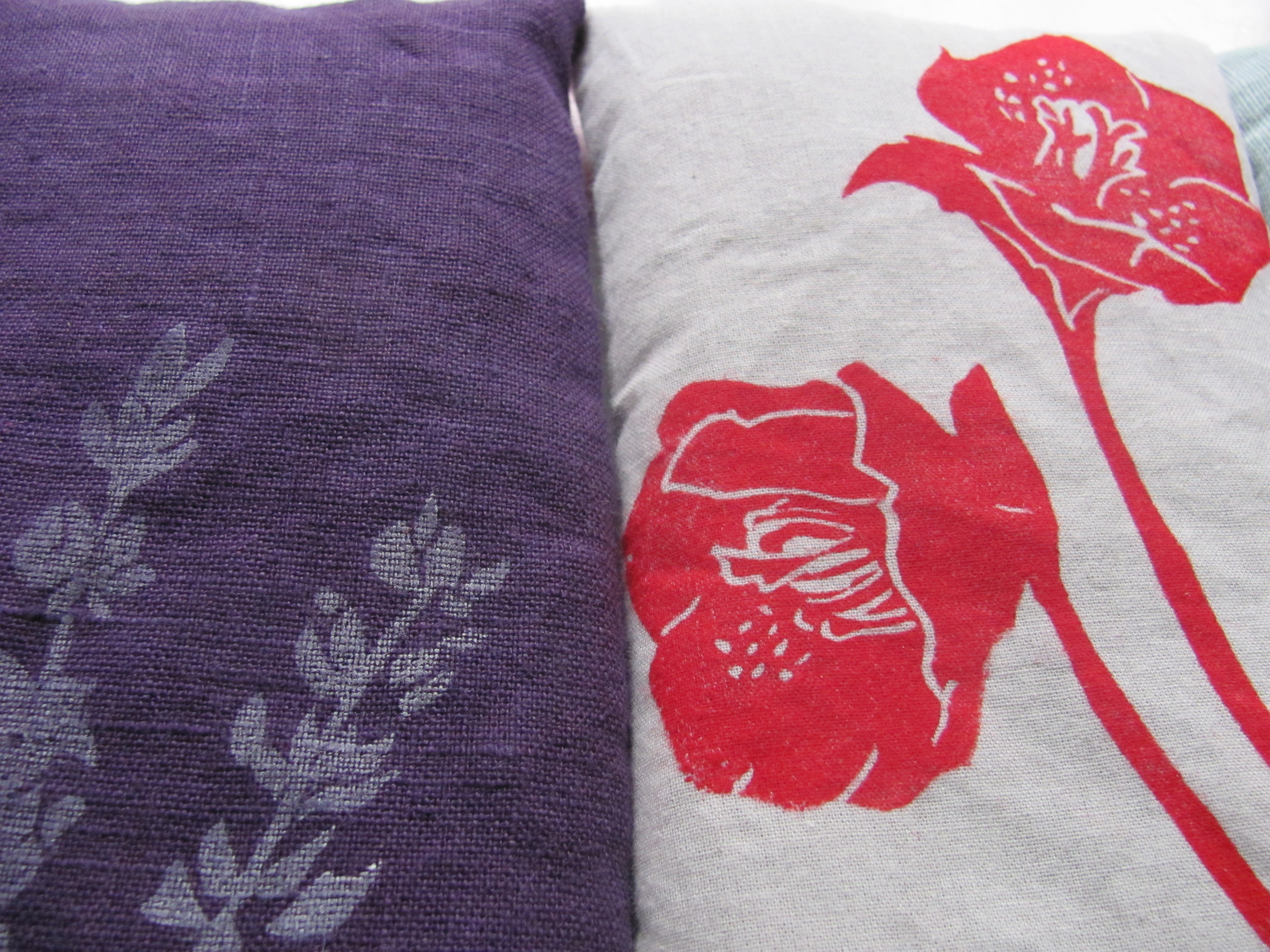 • (2) “Linden Rose” eyepillow, red print on natural muslin