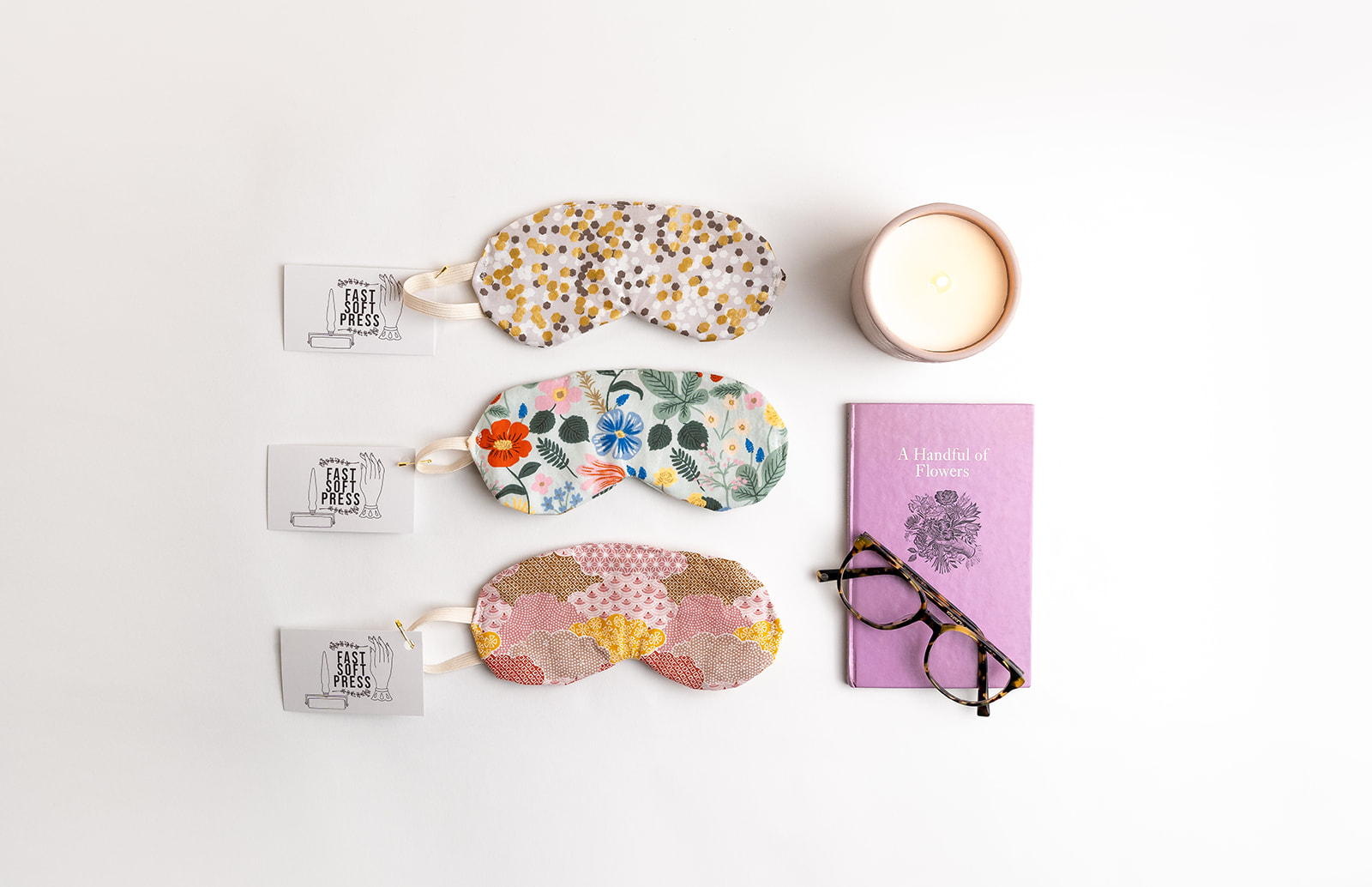 Each sleepmask is handmade and contains a small pouch that is sewn on the inside of the mask containing dried French lavender. Sleepmasks are 100% cotton and and come in 3 fun designs.